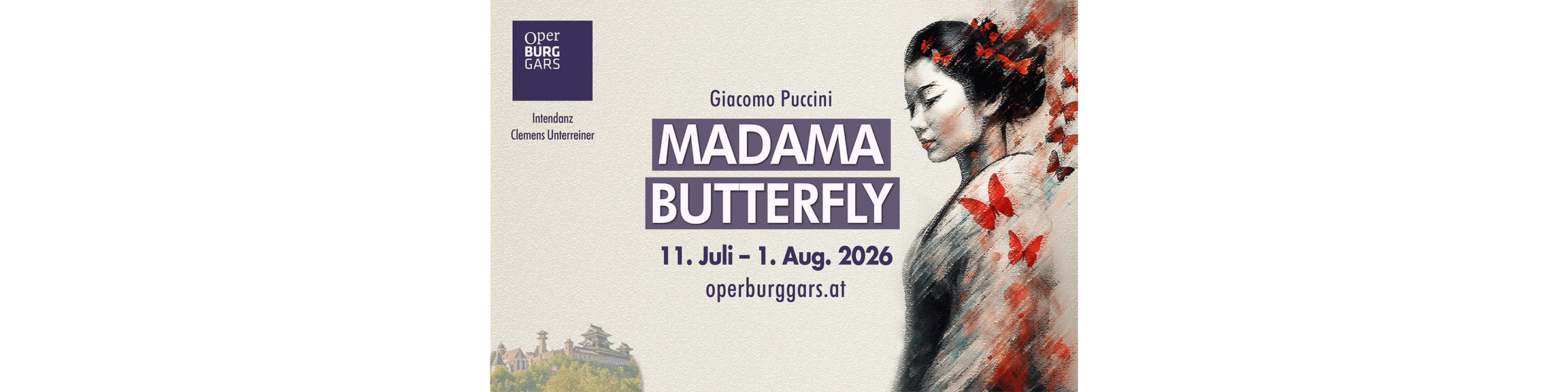 Wenn über den historischen Mauern der Burg Gars die Sonne langsam untergeht und das Waldviertel in magisches Licht taucht, entfaltet sich im Sommer 2026 eine der bewegendsten Opern der Musikgeschichte: „Madama Butterfly” ist die zutiefst berührende Geschichte über Hoffnung, Liebe und das bittere Erwachen einer Frau zwischen zwei Welten.