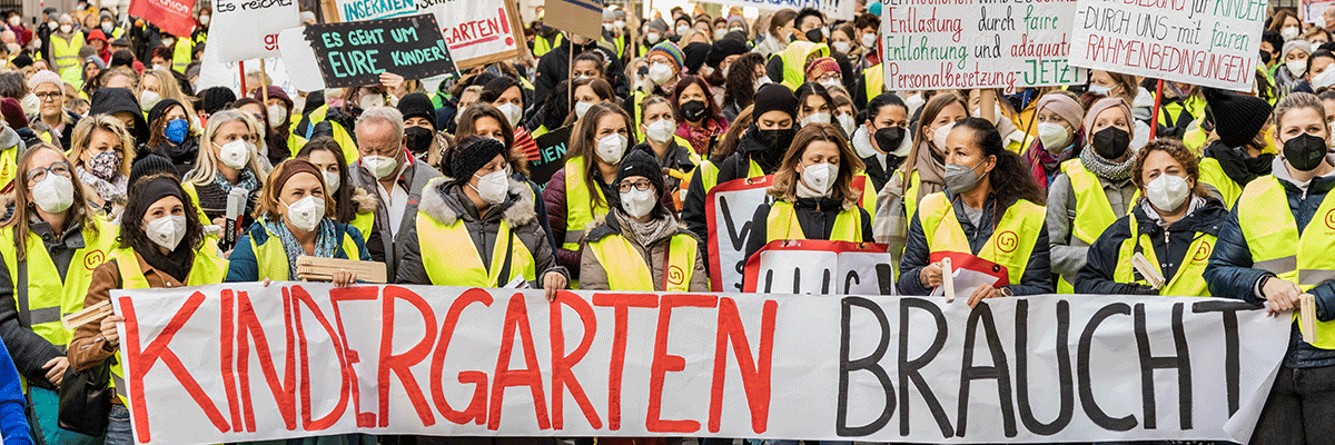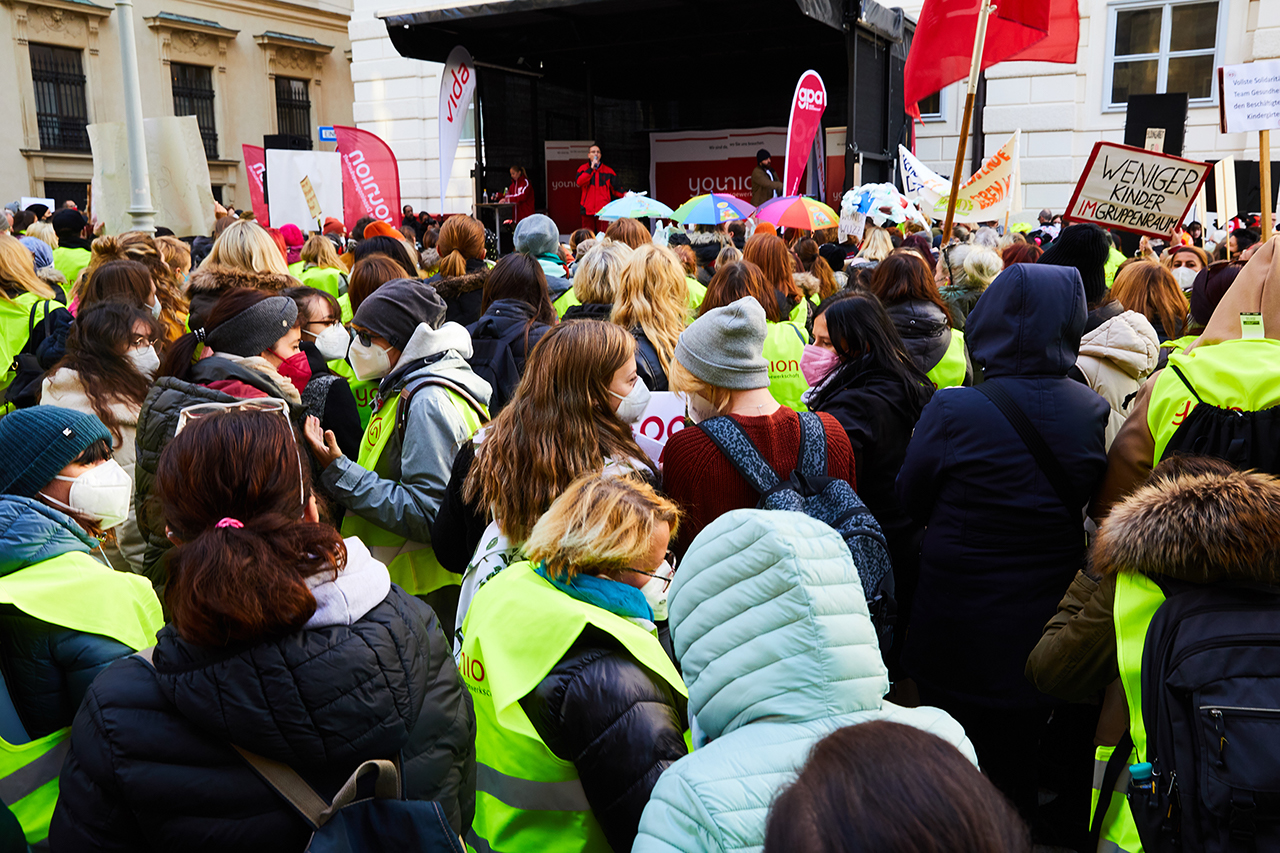 Rund 2.500 Kolleg:innen aus dem Kindergarten- und Hortbereich demonstrierten lautstark für ihre Anliegen: