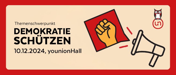 Zum Abrunden unserer Veranstaltungsreihe laden wir euch herzlich zur Abschlussveranstaltung am Tag der Menschenrechte, dem 10. Dezember 2024, 16.30 - 18.30 Uhr, in die younion Hall ein.