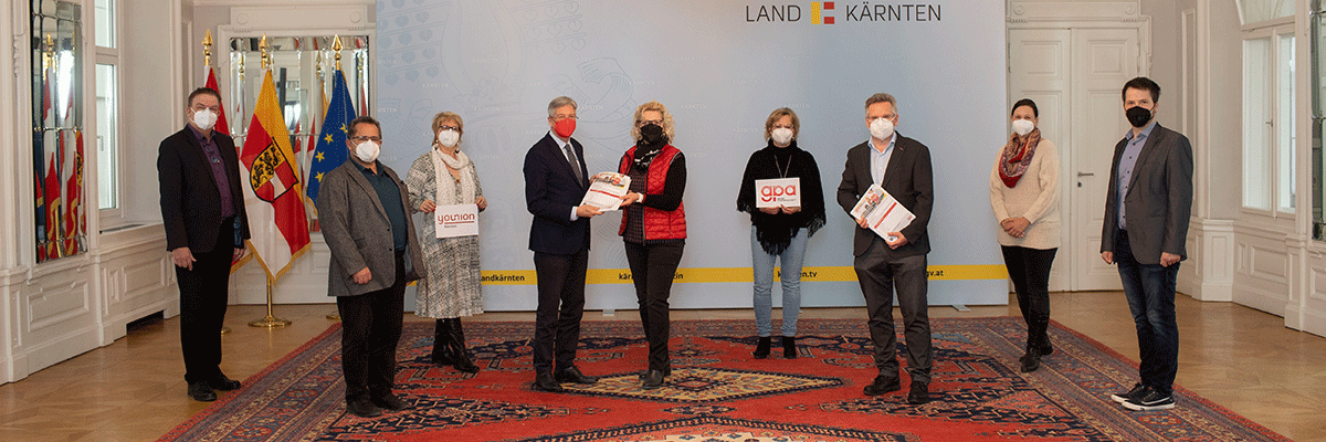 Bild v.l.n.r.: GPA Kärnten Vorsitzender Gerald Loidl, BR Vorsitzender AVS Kärnten Valid Hanuna, YOUNION Kärnten Landesfrauenvorsitzende Sabine Kulterer, LH Dr. Peter Kaiser, BR Vorsitzende Hilfswerk Kärnten Isabella Zeiringer, GPA Kärnten Landesfrauenvorsitzende Silvia Igumnov, LAbg. u. Vorsitzender Bildungsausschuss Andreas Scherwitzl, BR Vorsitzende Kindernest gem. GmbH Dunja Abuja und GPA Kärnten Regionalsekretär Ralph Sternjak.